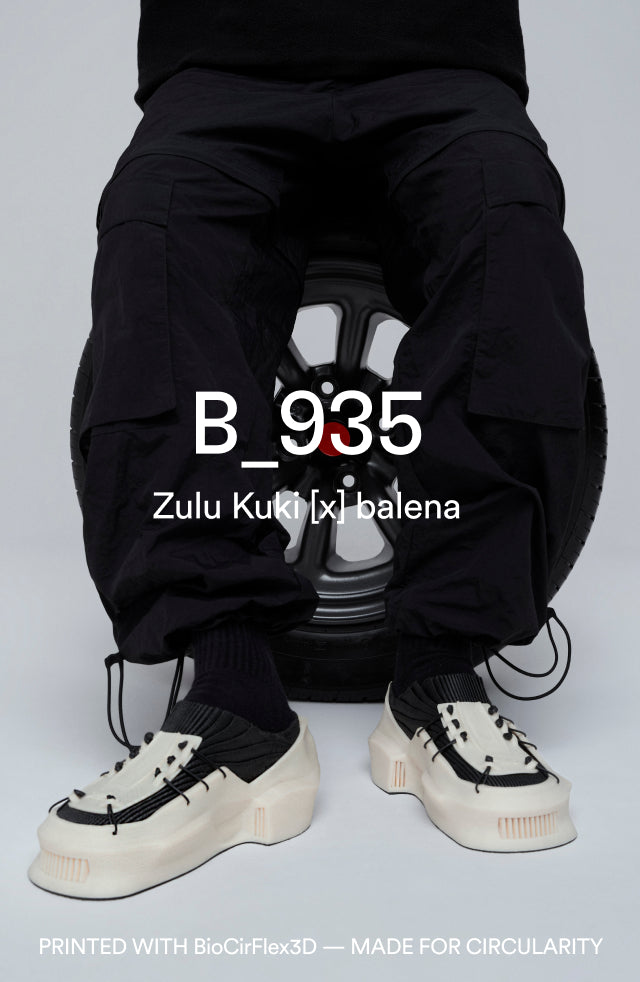 Balena has partnered with visionary designer Zulu Kuki to merge the worlds of footwear design and technology, innovation and sustainability, setting a new benchmark in the fashion industry. With the debut of their latest creation utilizing BioCir®flex3D, this collaboration is pushing the limits of what’s possible, blending cutting-edge 3D printing with material innovation.