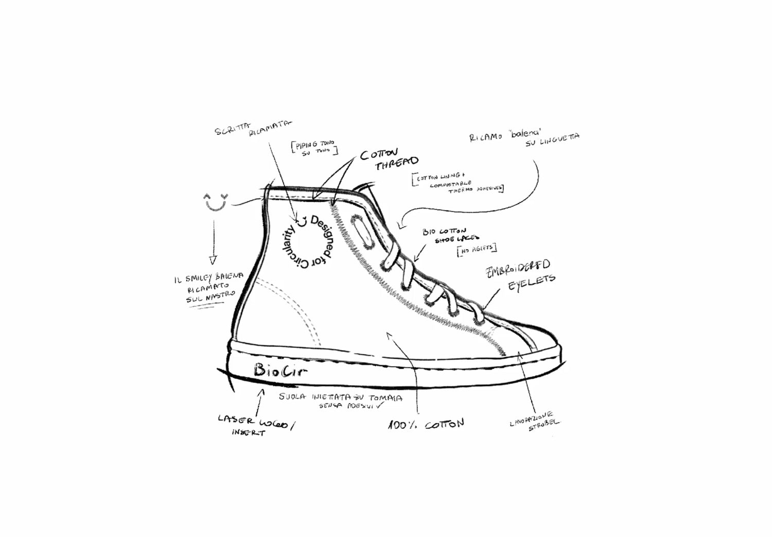 Balena's revolutionary BioSneakers mark a bold departure from the environmental pitfalls of the conventional footwear industry. Through our unwavering commitment to sustainability, we've meticulously designed a fully compostable sneaker, challenging industry norms and championing circularity.